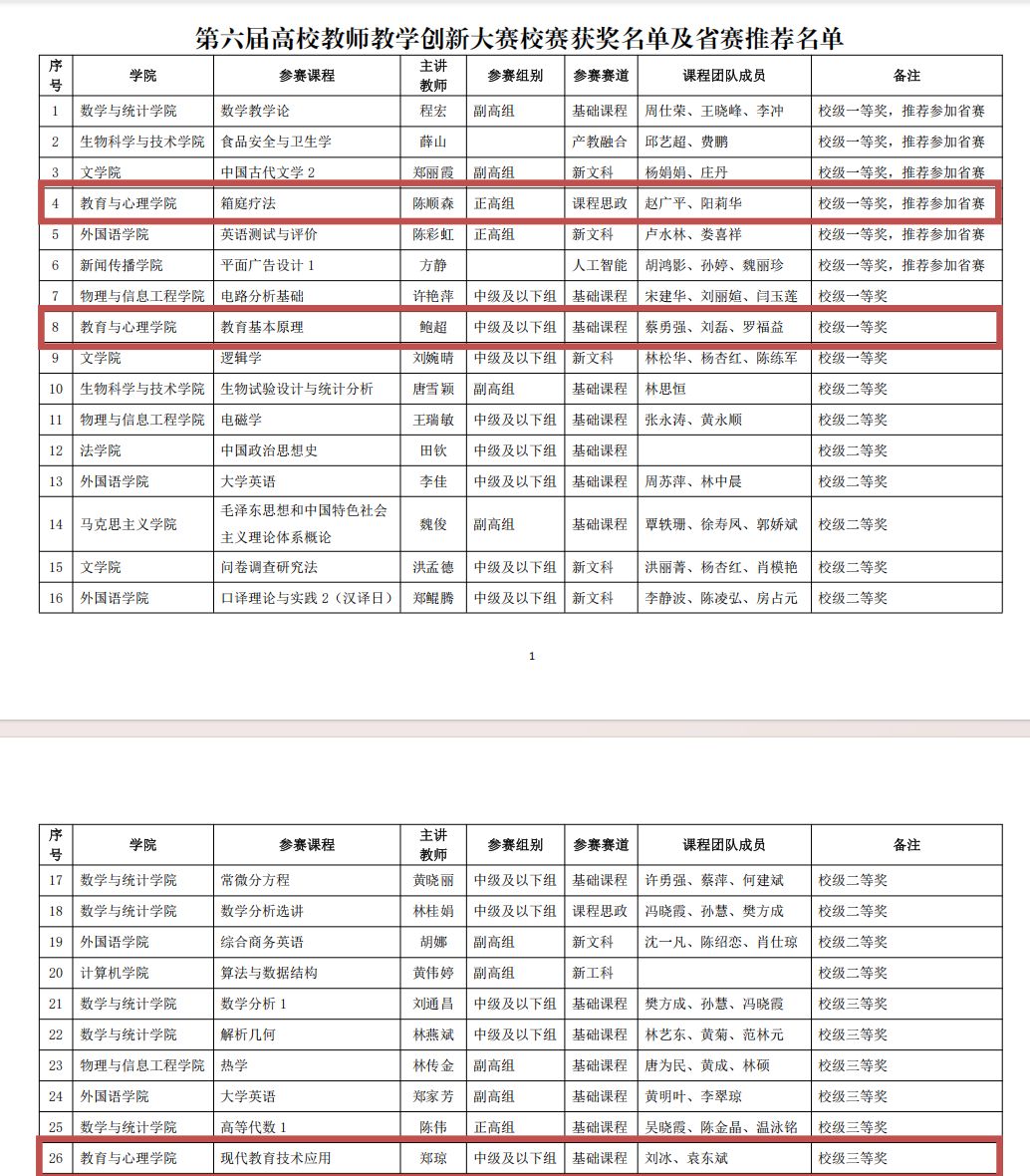 近日,太阳成集团tyc33455ccww第六届本科教师教学创新大赛结果揭晓。根据《太阳成集团tyc33455ccww本科教师教学创新大赛实施方案(闽南师大〔2025〕180号)》和《太阳成集团tyc33455ccww关于举办第六届本科教师教学创新大赛的通知》(教务〔2025〕195号)...