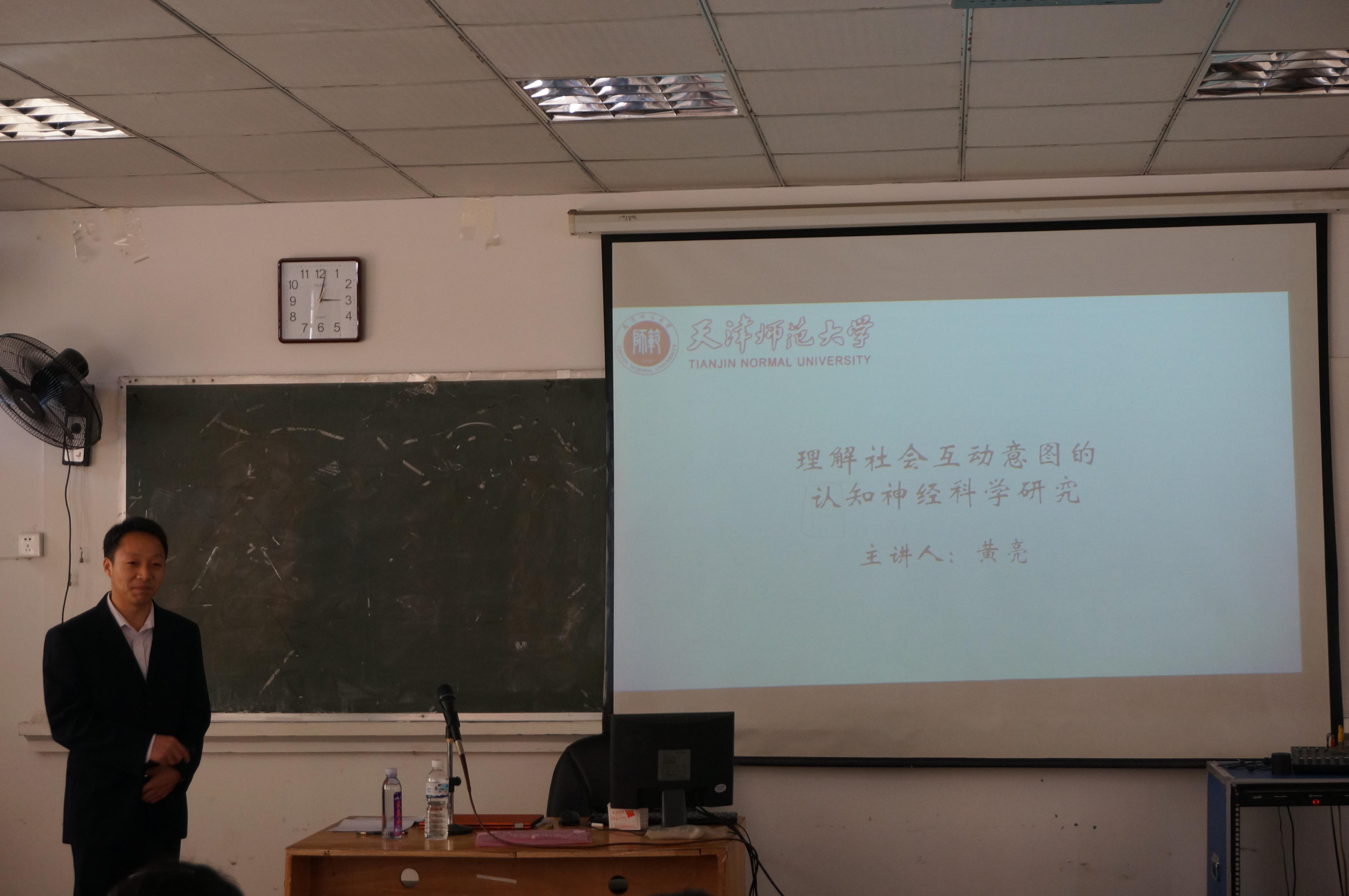 2014年12月29日下午,天津师范大学心理与行为研究院黄亮博士(基础心理学方向)应来我校教育科学学院邀请,到我校开展题为《理解社会互动意图的认知神经科学研究》的讲座。
