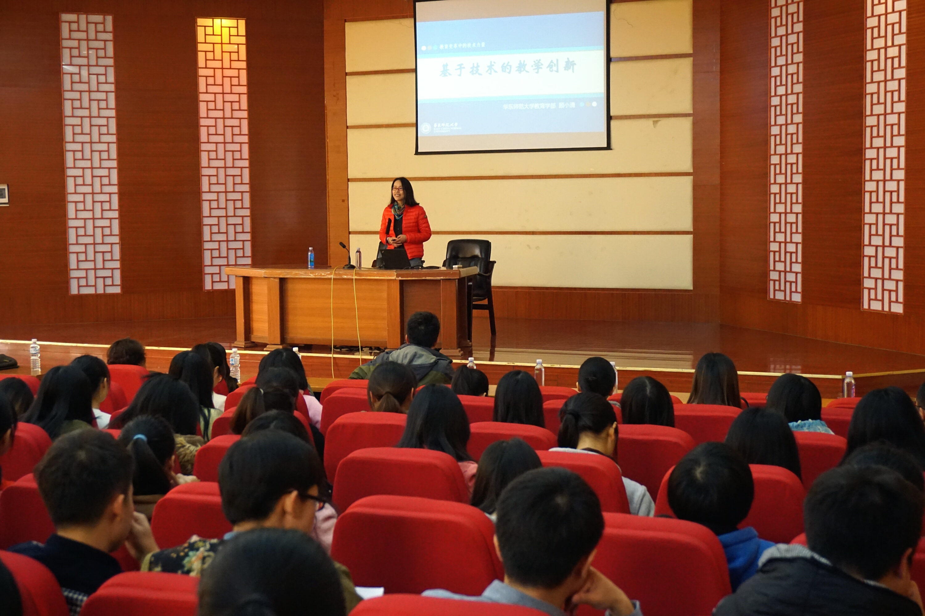 2014年12月30日下午,华东师范大学教育科学学院博士生导师顾小清教授,应我校教育科学学院邀请,在东区报告厅做了题目为《基于技术的教学创新》的讲座。