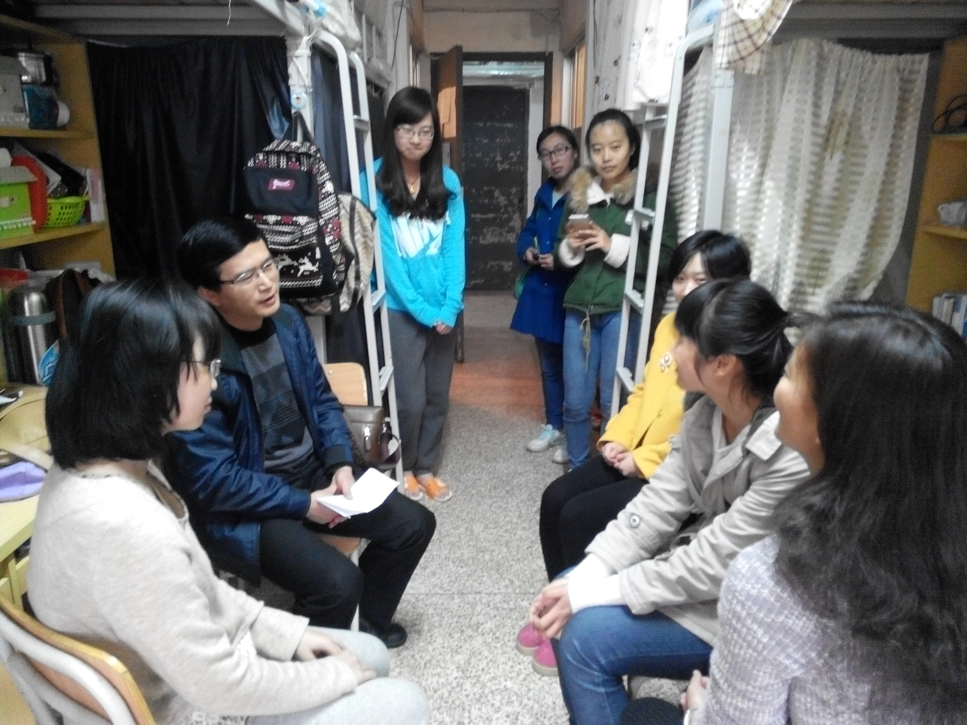 3月14日下午,教育科学学院党总支书记朱志明带领太阳集团领导小组一行深入瑞京学生公寓召开学生座谈会,了解学生住宿、生活、学习等方面情况,并走访了学生宿舍,与学生亲切交谈。
