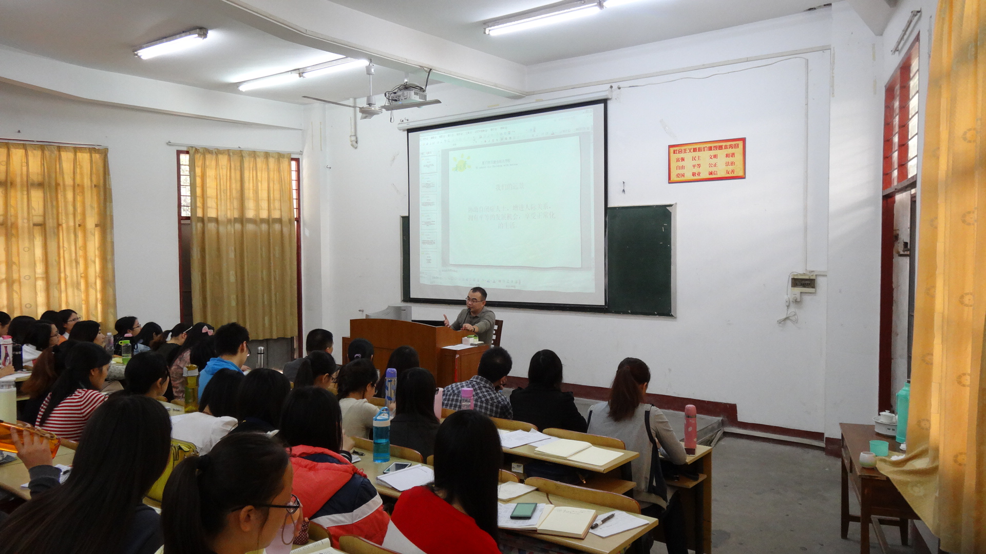 为了提高我校心理学学生服务社会的实践能力,拓宽就业渠道,应教育科学学院、校“自闭症诊治与教育”创新团队邀请,厦门市天康自闭儿学校校长赵义开老师于11月15日、16日莅临我校,为心理学研究生、本科生开设“自闭...