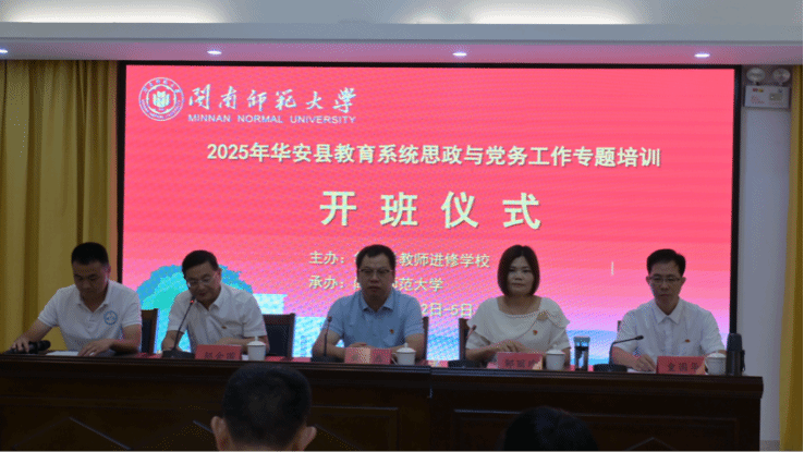 2025年7月2日至5日,我院在福建寿宁成功举办华安县教育系统思政与党务工作专题培训班。本次培训覆盖全县中小学思政骨干、党务工作者及校领导共70人。特邀寿宁县委党校高级讲师郭建平、教研室主任陈辉等专家授课。课程聚焦于...