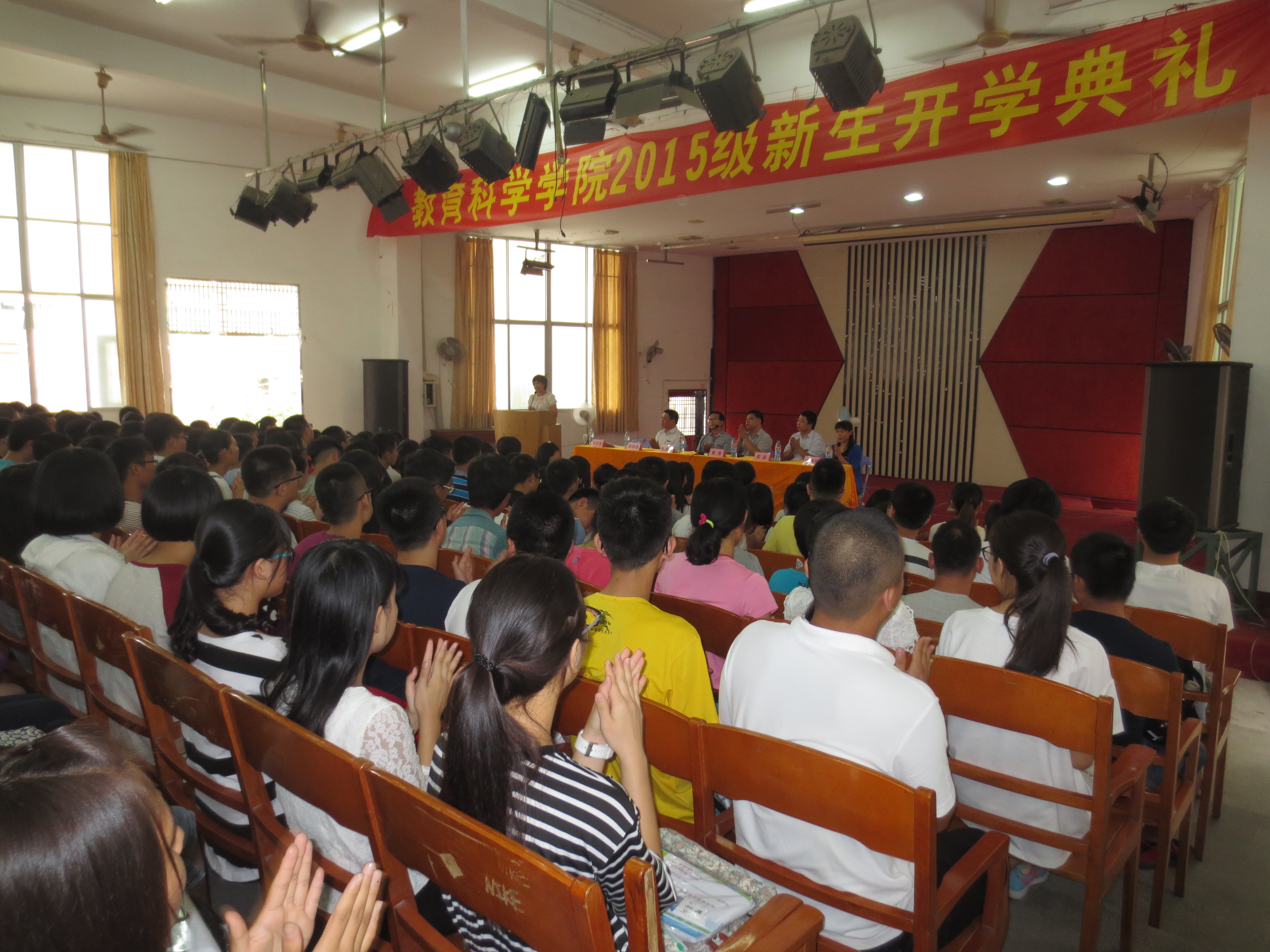 9月13日上午,教科院新生开学典礼在大梯教正式举行。黄清院长、朱志明书记、院长助理索磊老师、陈顺森老师、团委负责人陈春慧老师和15级辅导员陈佳薇老师出席了开学典礼。奏唱国歌之后,由黄清院长致辞,对新同学们融入新生活提出了几点建议,希望能够在认识到自己的专业特色的基础上,在将来的学习生活中积极发挥教科院的学院特色,谱写教科院新的明天。紧接着由在校生代表发言,对新同学们表示了热切的欢迎,以自己的亲身经历激励同学们在接下来的大学生活中努力拼搏。最后由15级新生代表发言,对同学们的大学生活提出自己的一点建议,希望大家都能不负青春,在闽南师大谱写出属于自己的最好年华。