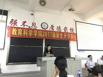 9月17日早上8点50分,我院在笃行223报告厅举行了新生的开学典礼。我院院长黄清、院党委书记朱志明、副院长索磊、院长助理林国耀,以及各系主任、辅导员出席了此次的开学典礼。首先是黄清院长上台讲话,他首先也是代表教科院的全体人员欢迎新生,之后再介绍教育科学学院,让新生更加了解我们院的师资力量,鼓励学生在新的环境和挑战下,努力适应,奋发向上;激励新生们要有高远的目标,坚持自己的理想,不迷惘,坚守信念,执着追求;强调学习需要方法,充分利用现有的资源达到学习目标,而不是花无味的时间进行低效率的学习;还提倡大学生自主学习。接着是老生代表上台发言,代表着每一位教科院学子对新生们的欢迎,最后是新生代表上台发言,激励新生开始自己崭新的人生。