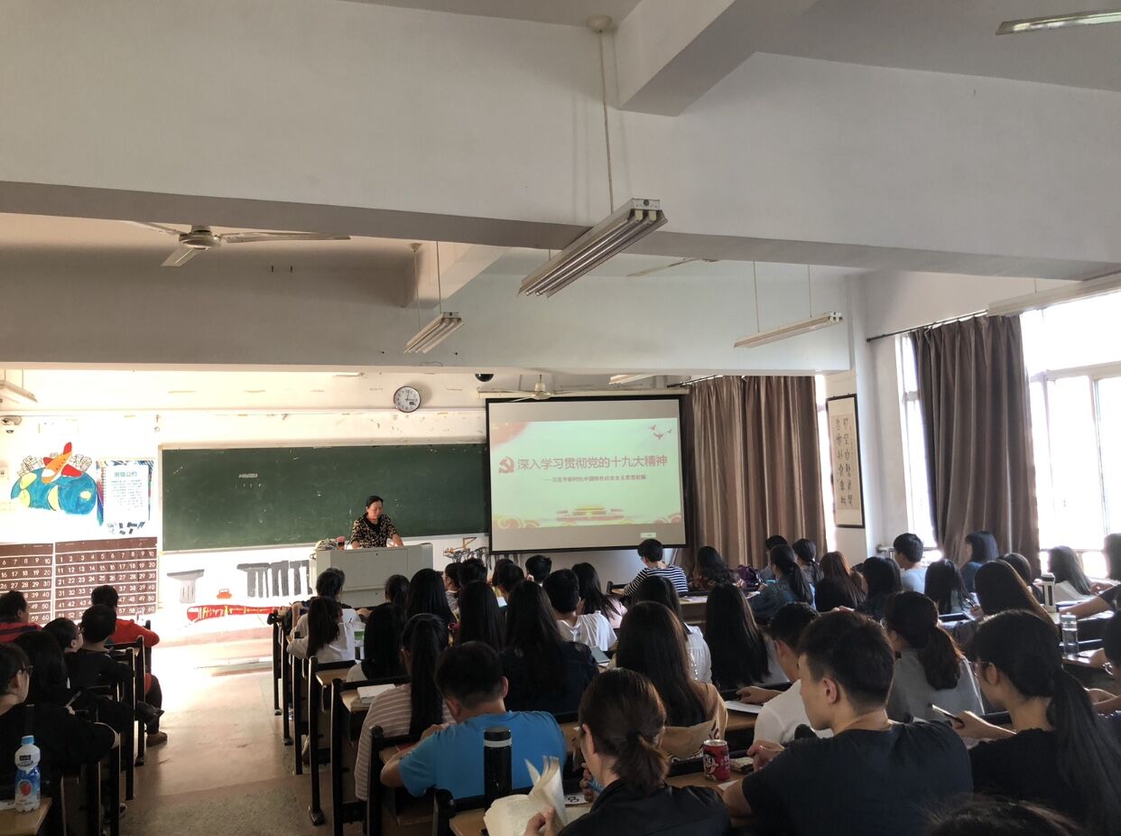 余素玉老师以“深入学习贯彻党的十九大精神”为主题,从党的十九大的鲜明主题和主要成果、习近平新时代中国特色社会主义思想、全面从严治党、十九大党章修订等十个方面,结合自身学习体会和学校实际进行了详细、深刻的解读。