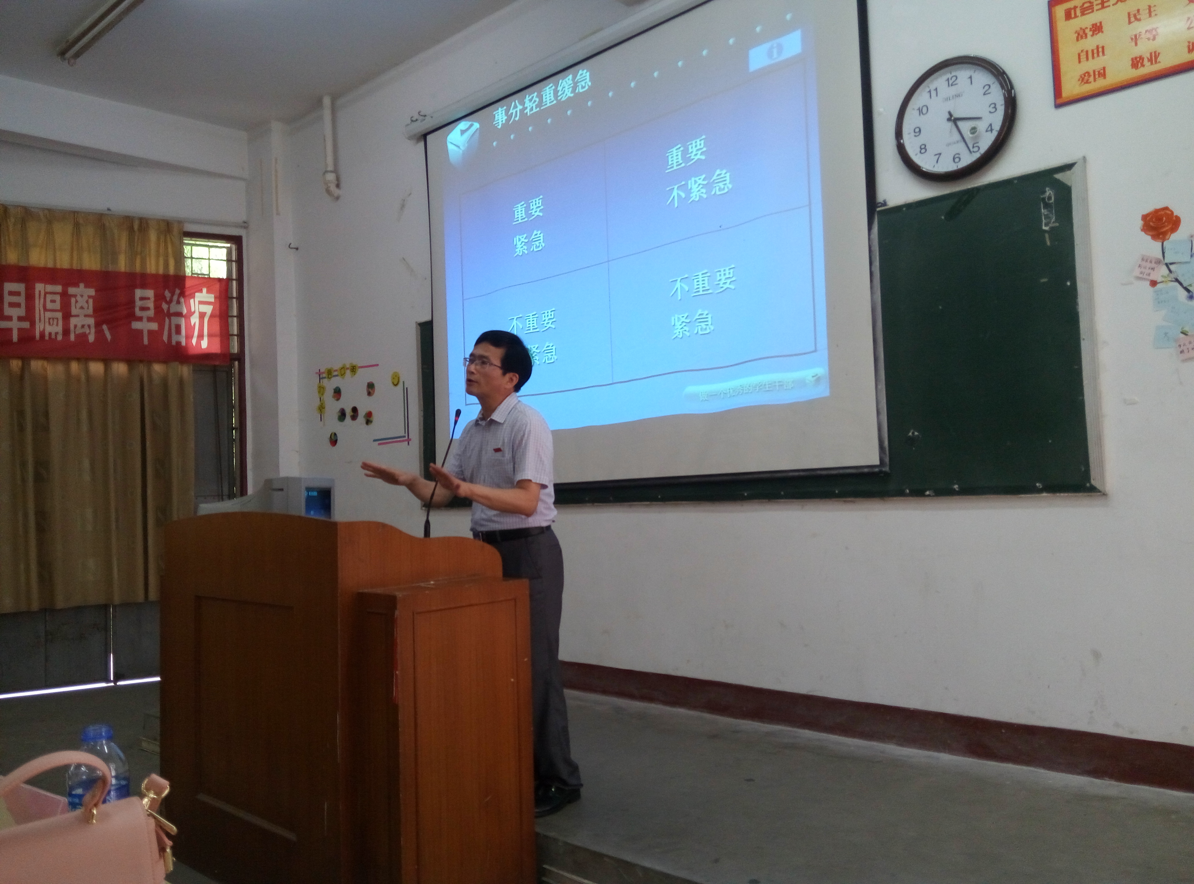 开班典礼上,朱书记从学生干部对组织的重要性、学生干部的发展方向以及学生干部必须具有责任感和创新能力三个层面对大家提出了殷切希望,强调了不断学习、不断发展的必要性,鼓励各位学生干部在学习实践中不断进步,摒弃杂念,更好地为学院服务、为广大同学服务。