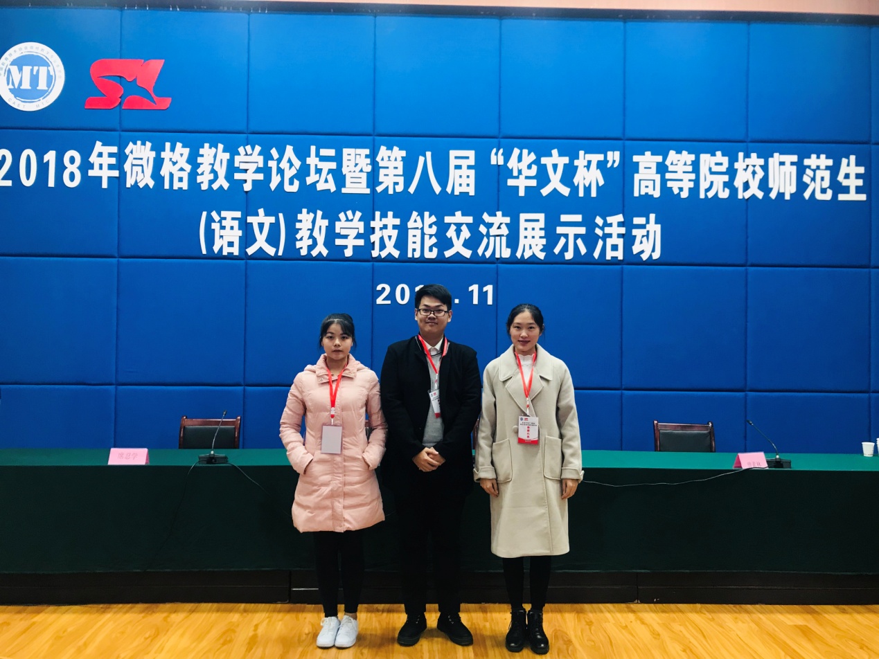 2018年11月9日至12日,第八届“华文杯”全国师范院校师范生语文教学技能大赛在陕西省商洛学院成功举办,我校教育科学学院小学教育专业3名同学在此次大赛中表现优异,荣获佳绩。