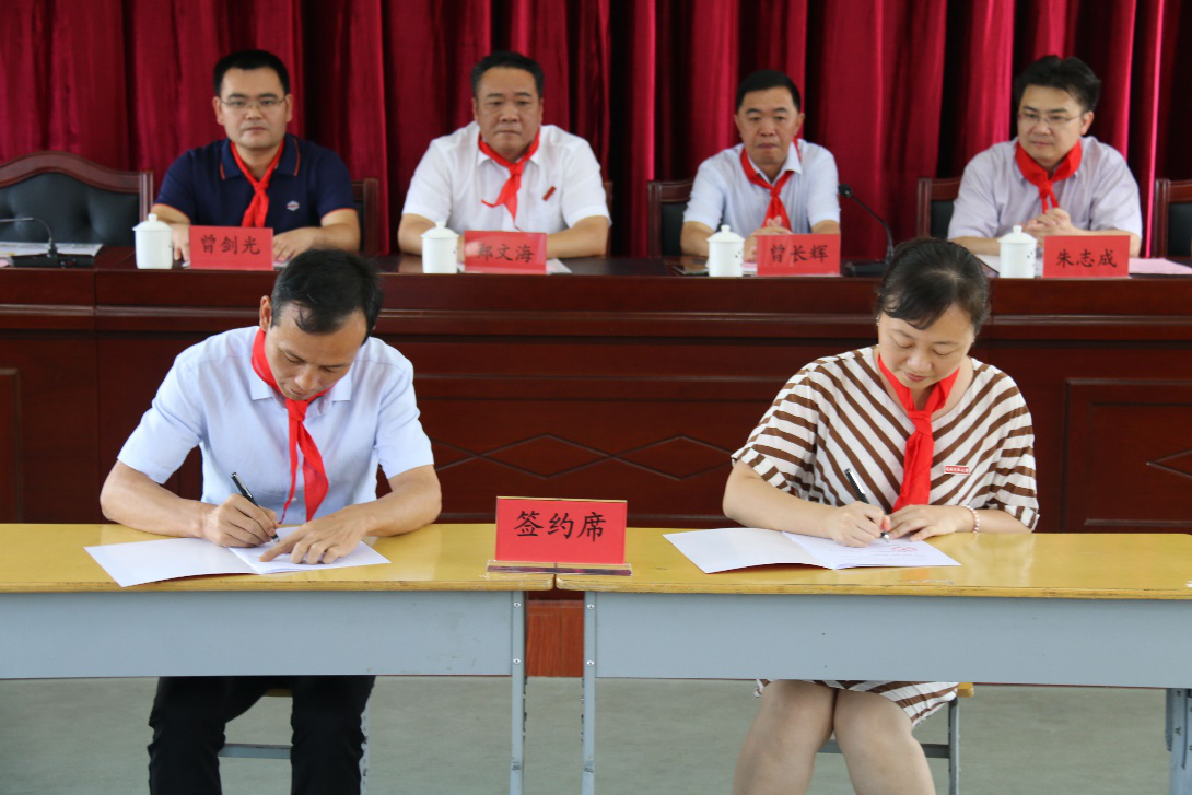 活动期间,教科院和霞寨中心小学“大学生社会实践基地”共建签约授牌仪式和2019“阅享童心,携手童行”主题夏令营开营仪式在霞寨中心小学顺利举行。仪式上,平和县人民政府教育督导室曾长辉发表讲话,讲话中指出青年学生要热爱伟大祖国,树立伟大理想;坚持砥砺奋进,担当时代重任;练就过硬本领,锻炼品德修养,希望通过此次社会实践基地的建立,更好地助力乡村教育振兴发展战略。教科院党委副书记杨君玉老师在会议上表示,希望同学们在实践中,要吃苦耐劳,认真观察,用心体验,热情服务,以专业指导实践,用实践夯实专业,努力为霞寨中心小学带去最优质的志愿服务。并指出,此次签约共建活动,不仅是教科院与平和霞寨中心小学加强交流合作的一种新形式,更是在校地共建乡村小学青少年宫的大背景下,积极构建校地有机结合育人新模式、协力做好人才培养的一次有益尝试,希望双方今后可以在更多领域、更大范围内开展深度合作,积极为服务乡村教育振兴发展做出更大的贡献。