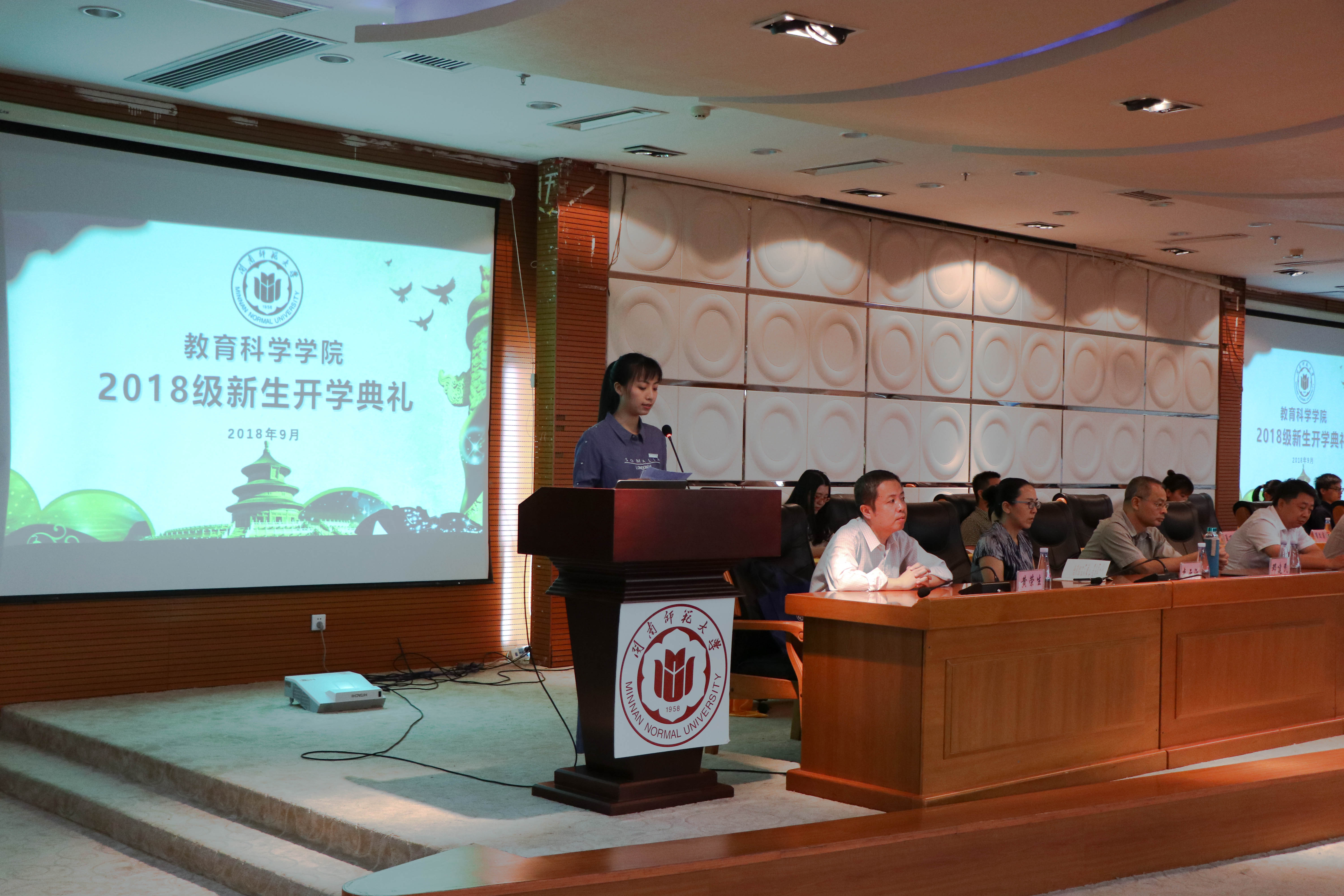 9月15日下午,教科院在图书馆五楼报告厅举行了2018级新生的开学典礼。院长黄清、党委书记郑文海、副院长索磊、院长助理林国耀以及各系主任、教师代表、全体辅导员出席了本次的开学典礼。