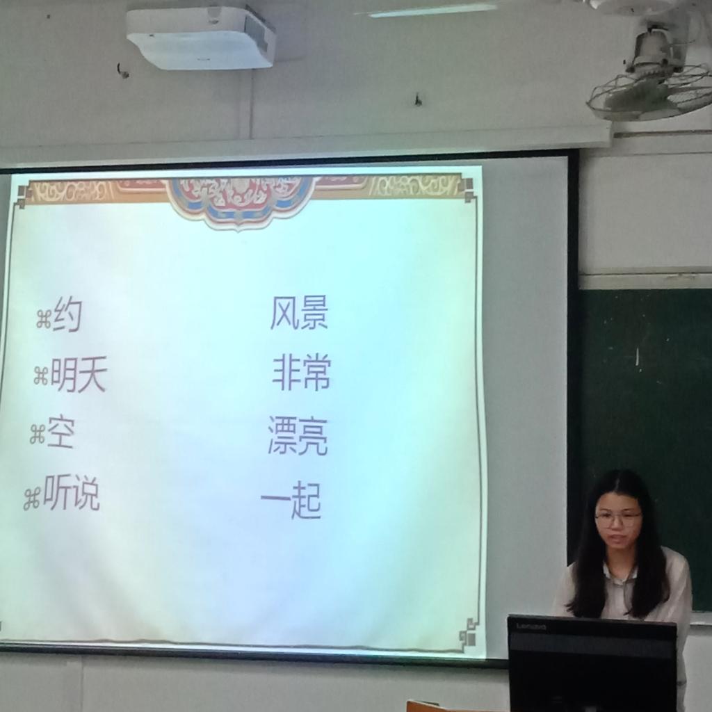 活动采用主讲人引导,研究生小老师一对一辅助的交流模式。首先由主讲人向留学生介绍与“约朋友”相关的生字词并逐一解释与造句,结合生活情境学习中文更有助于留学生理解与掌握。随后,中越学生进行实际情景对话的演练,积极参与互动,此环节提升了课堂活跃度,使课堂气氛引向高潮。