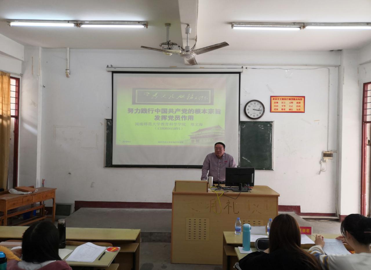 院党委书记郑文海发表了重要讲话,强调了党校培训的重要意义,希望学员们能够珍惜培训学习的机会,端正学习态度,真正做到学有所思、思有所得、得有所获。充分发扬理论联系实际的良好学风。在党课《努力践行中国共产党的根本宗旨,发挥党员的先锋模范作用》中,郑文海书记从古代的“民为邦本,本固邦宁”入题,讲述了中共领导人如何一步步地为人民服务的发展历程,并引用苏联解体前的一份关于苏共代表的问卷调查事例向同学们讲述了中国共产党与其他政党的区别及本质特征。最后,郑文海书记教育各位学员要自觉坚持和践行党的根本宗旨,坚定共产主义理想和中国特色社会主义信念,发挥先锋模范作用。
