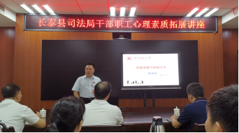 签约仪式后,陈顺森教授为长泰县司法局全体干部职工开展了一场题为《自我发展与家庭关系》的心理素质拓展讲座。陈教授围绕同一个屋檐下生活的共生感、夫妻力动均衡、亲子一线之隔等主题,以丰富的案例生动阐述了自我发展与家庭关系之间的紧密联系,为大家提供了增进心理健康、促进家庭成长的“心理良方”。