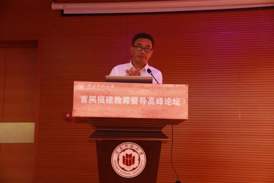 国家督学、福建省教育厅副厅长、福建省人民政府教育督导办公室主任李迅作题为《立足新时代 再创新辉煌》的主旨报告,李迅副厅长回顾了福建省教育督导的历史,重点介绍了当前福建省教育督导的基本情况,特别是在政府督导(督政)、学校督导(督学)、评估监测等方面的情况。他指出,党的十九届五中全会第一次明确提出“建设高质量教育体系”,这是新时代教育发展的新主题、新方向、新目标、新任务。福建省教育督导将进一步抓实“对市督导”,促进督政体系健全优化;拓展对校督导范围,延伸督学工作抓手;围绕教育评价新导向,推动评估监测体系改革;立足提质增效,创新教育督导工作方式;全面履行职责,推动教育督导“长牙齿”;密切交流协作,完善教育督导智库建设。