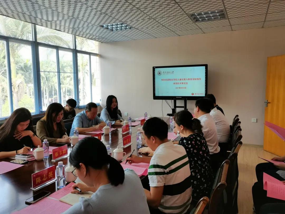 江烨欣书记、蔡韦龄副院长分别介绍了阳光学院的办学情况,重点介绍了学院支持应用心理学专业学生学业发展的举措。林大熙教授对我院近年来在心理学学科建设、专业建设、课程建设所取得的成绩表示由衷的钦佩。他表示,太阳成集团tyc33455ccww作为地方师范类高校,心理学专业能被确定为国家级一流本科专业、箱庭疗法被确定为首批国家级线下一流课程,充分体现了心理学学科基础扎实、人才培养质量高、课程特色明显等优势,希望以此次交流为起点,加强双方合作,推动阳光学院儿童发展与教育学院人才培养、学科建设发展。双方还就阳光学院聘请该校毕业、在我院学习的4名研究生校友为“升学导师”等事宜深入交流了意见。