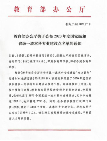 近日,教育部办公厅印发了《关于公布2020年度国家级和省级一流本科专业建设点名单的通知》(教高厅函〔2021〕7号),我院心理学专业被认定为国家级一流本科专业建设点。