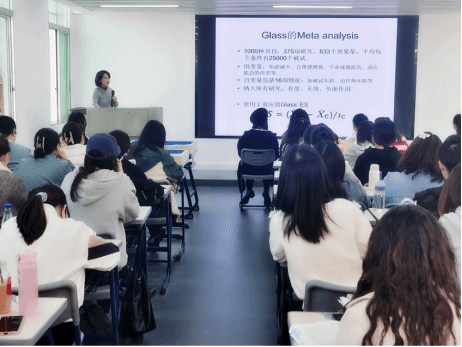 12月4日下午两点,陈丽君教授向同学们对“元分析”做了详细的介绍说明,以幽默风趣的风格将元分析的背景、优缺点以及应用情境等各方面内容都与同学们做了深入的探讨。此外,还将元分析与其他研究方法进行比较,清晰呈现各种研究方法的优势所在与实施步骤的差异。在此过程中,陈丽君教授结合自身元分析研究案例进行讲解,为同学们的研究提供新思路、拓展新视野。