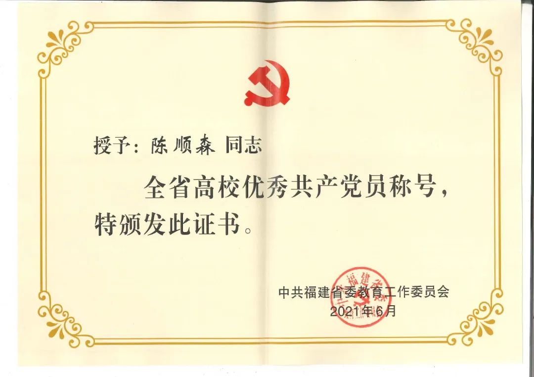 ▲学院党委副书记、院长陈顺森教授获评全省高校优秀共产党员