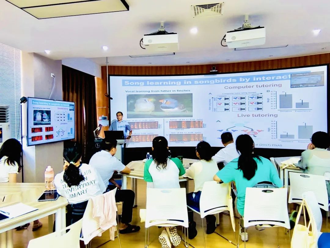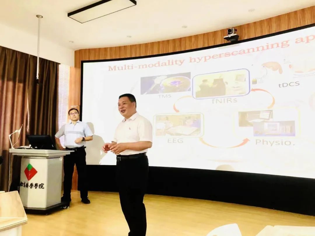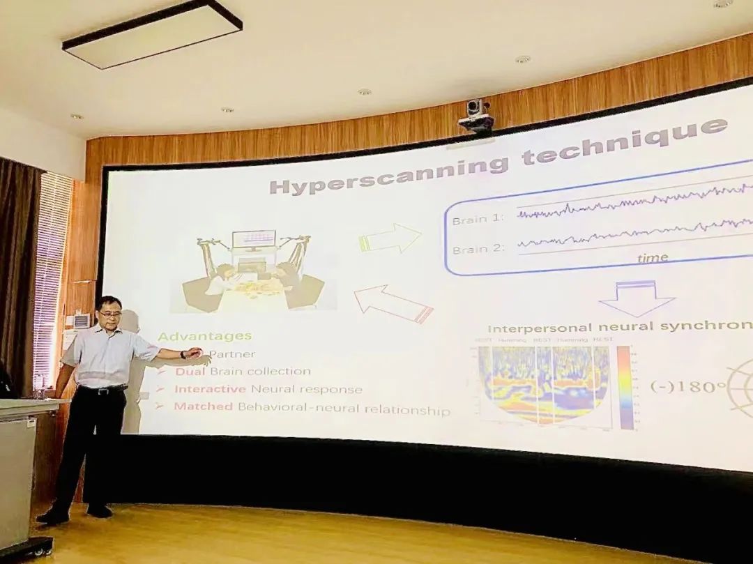 随后,李教授从实验过程设计、材料制作、仪器使用、数据结果分析和变量操作等方面,细致讲解了最新研究成果,证实了人际互动过程中,个体间大脑的同步性或者共变性,可以有利于个体行为的高效完成、精神疾病的诊断和治疗工作,为指导生活实践有重大意义。