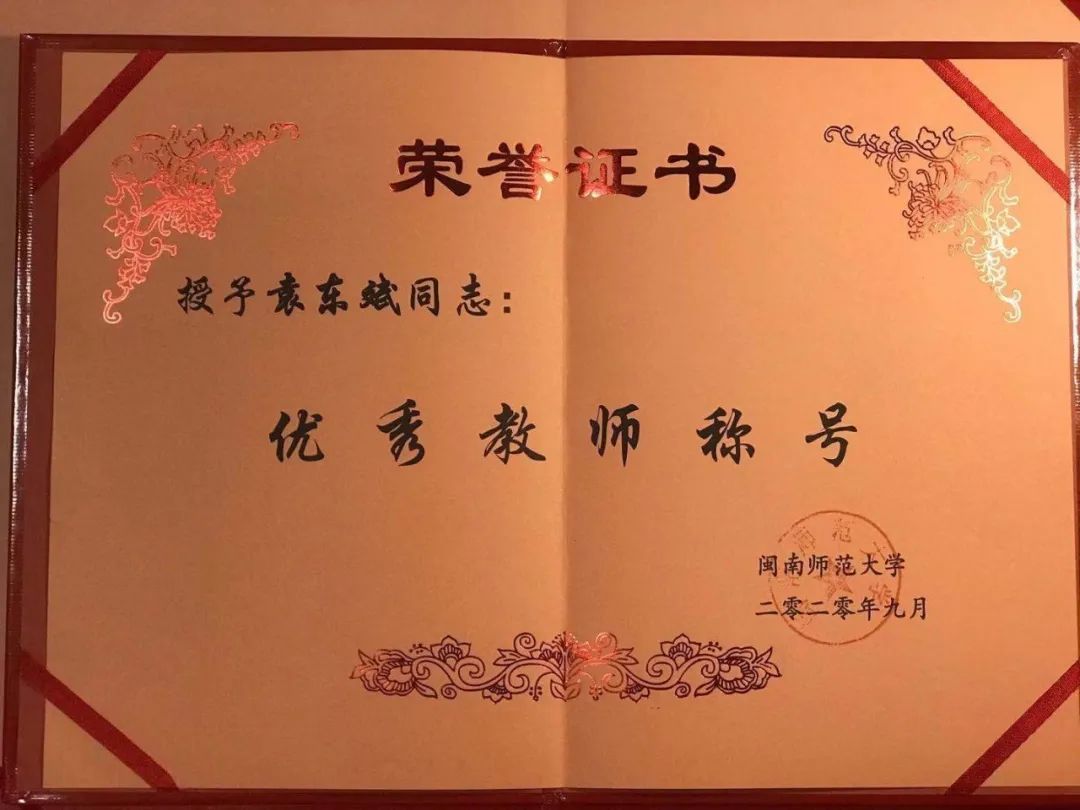 作为专任教师,袁东斌老师教学态度认真,治学严谨,学识扎实,坚守教育教学一线,高质量地完成教育教学工作任务,努力推进教育创新。其所授课程受到了师生的一致好评,学生每年评教分数均在90分以上。袁老师把教书育人作为教师的根本任务,不断地对教学进行创新,提高自身的教学水平,充分发挥专业特长,利用各种信息技术手段,进行教学改革。2020年,袁老师获校“优秀教师”荣誉称号。