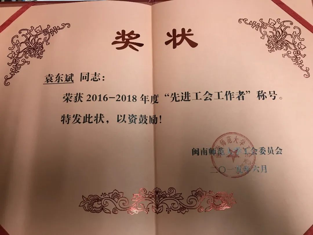 作为教科院工会委员,袁东斌老师尽心尽力的为本院广大教职工服务,使教科院教工充分感受到了工会大家庭的温暖。同时能积极组织并参与学校、学院的各类活动,做好后勤工作,工作受到了教科院广大教师的认可,荣获校2016-2018年度“先进工会工作者”荣誉称号。