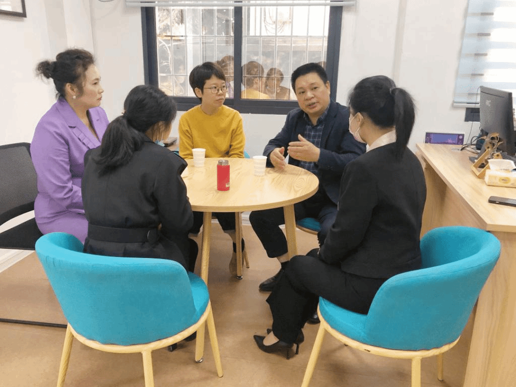 陈顺森、杨杏红与肯纳集团总裁曾瑞芬、副总裁吴秀华等领导深入交流,对孤独症儿童语言康复训练、特殊儿童语料库建设、特教教师专业能力提升、家长创伤后心理成长等话题展开探讨,以期更有效帮助孤独症儿童及其家长,提升特教教师家庭成长教育指导能力,为家导航,精准帮扶。