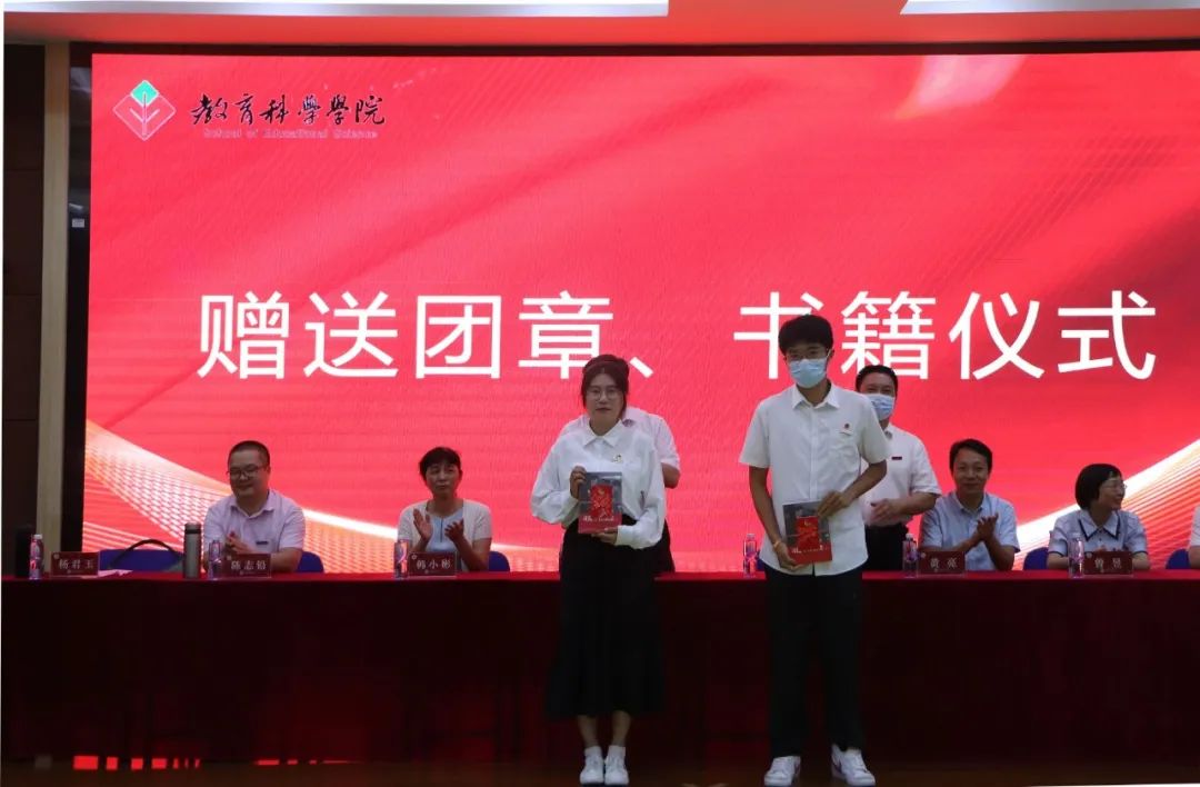 郑文海书记、陈顺森院长向两名新团员赠送《习近平在福建》和团章。