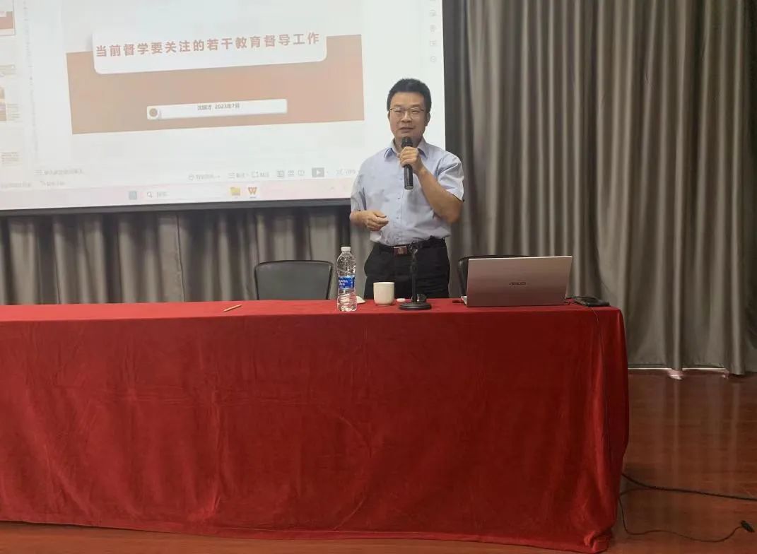 培训班上,沈国才作题为《当前督学要关注的若干教育督导工作》的专题报告,结合主题教育,围绕习近平总书记在中共中央政治局第五次集体学习时的讲话精神,从全国教育督导工作视频部署会议精神、福建教育督导有关情况、学校责任督学要重点关注的若干工作等三个方面进行深入阐述。他指出,当前学校责任督学要重点围绕“双减”、“学前双普”和“义务教育优质均衡”开展工作。他希望责任督学要不断提高教育专业水平、业务素质和督导技巧,为提升我省基础教育高质量发展发挥利刃作用。