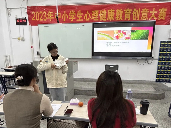 在中小学生心理健康教育教学设计比赛中,八名选手采用说课方式,对教学目标、教学方式、教学过程等方面进行阐述,并回答评委们提问的问题。评委老师们对选手们的教学设计逐一进行点评,并指出今后需要提高的注意事项、如何更好地将自己的设计理念融入在心理健康教育课程中以及教态等。