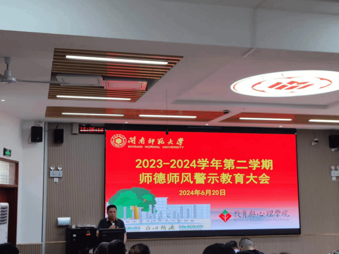 院党委副书记、院长陈顺森对师德师风相关案例进行通报,并对相关老师予以警示教育。陈顺森强调要深刻认识到加强师德师风建设是贯彻落实习近平总书记“弘扬教育家精神”重要指示的具体抓手,全体教职工要始终保持对教育事业的高度热忱和责任感,以高尚的师德师风引领学生健康成长。