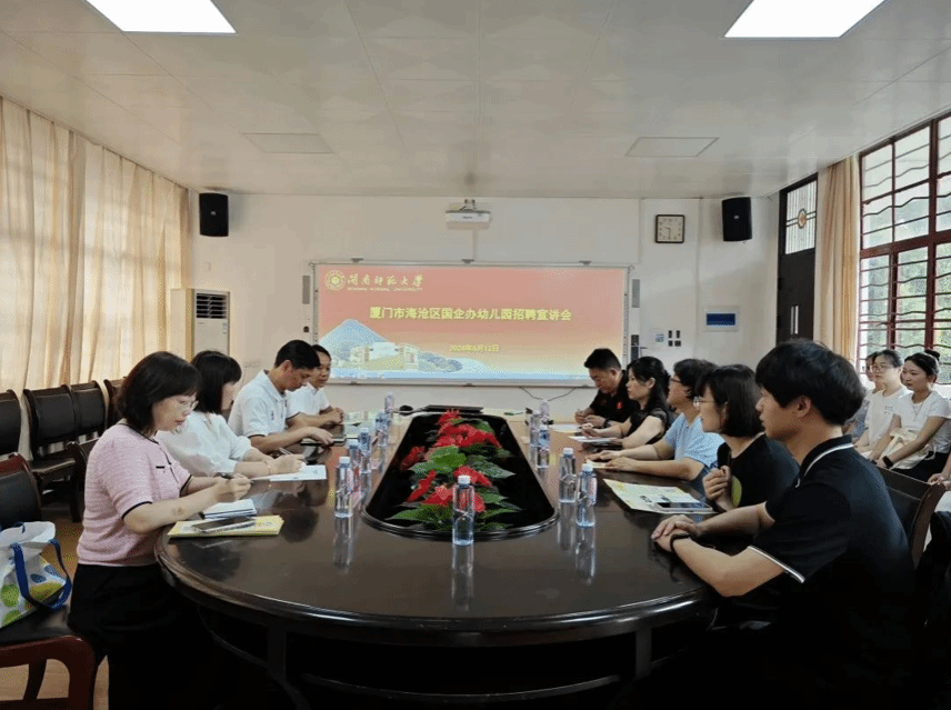 为进一步推进2024届毕业生就业服务工作,搭建毕业生与用人单位的交流平台,拓宽学前教育专业学生就业渠道,6月13日上午,我院学前教育系邀请了厦门海沧教育发展有限公司总经理林惠荣一行于创业楼201开展招聘宣讲会。我院副院长黄亮、学前教育系负责人、毕业班辅导员与2024届学前教育专业毕业班学生参加。