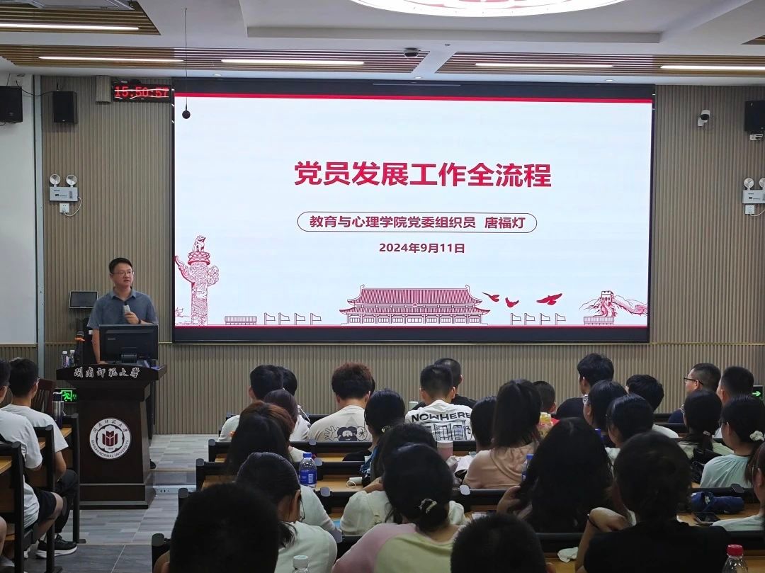 9月11日下午,为引导新生树立正确的党性观念,强化新生的党性意识,帮助新生建立对党团组织的认同感,我院党委组织员唐福灯老师于东门梯教一为24级全体新生进行了党性教育与党团知识学习。首先,他对我院发展党员工作流程进行了详细讲解;其次,他鼓励同学们积极参与党团活动,接受党组织的教育;最后,他告诫同学们要在今后的生活中时刻以党员的标准要求自己,积极向党组织靠拢。