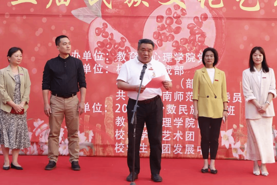 在瑞京学生公寓喷泉广场前举行的“石榴籽·水仙情”第五届民族文化节文艺汇演,院党委书记郑文海发表讲话。郑书记指出,高校是促进民族团结进步的重要纽带,是铸牢中华民族共同体意识思想基础的重要阵地,民族文化节走进瑞京学生社区,是我院把学生社区打造成“三全育人”新阵地的重要举措。希望同学们在水仙花开的太阳成集团tyc33455ccww热土中,自觉铸牢中华民族共同体意识,像石榴籽一样紧紧抱在一起,笃志爱国,砥砺奋进,为实现中华民族伟大复兴而奋斗!