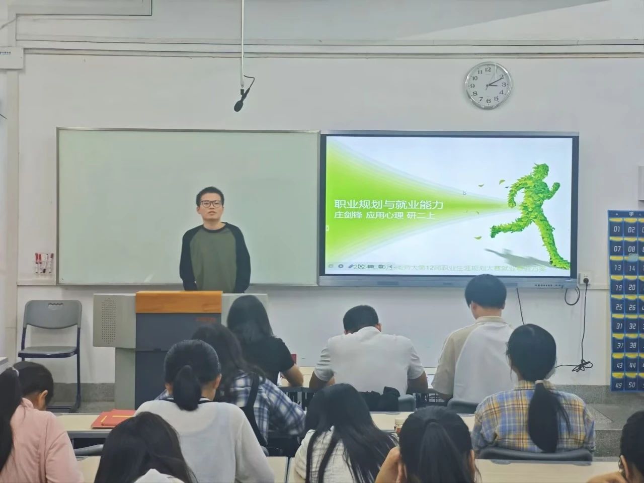为贯彻落实党中央、国务院关于高校毕业生就业工作的决策部署,落实《国务院关于印发“十四五”就业促进规划的通知》精神,增强大学生生涯规划意识,我院于11月11日在逸夫楼301举办大学生职业生涯规划大赛。校招生就业处综合科副科长徐欣老师、数学与统计学院辅导员李伟俊老师以及我院研究生辅导员王文伟老师担任本次比赛的评委。