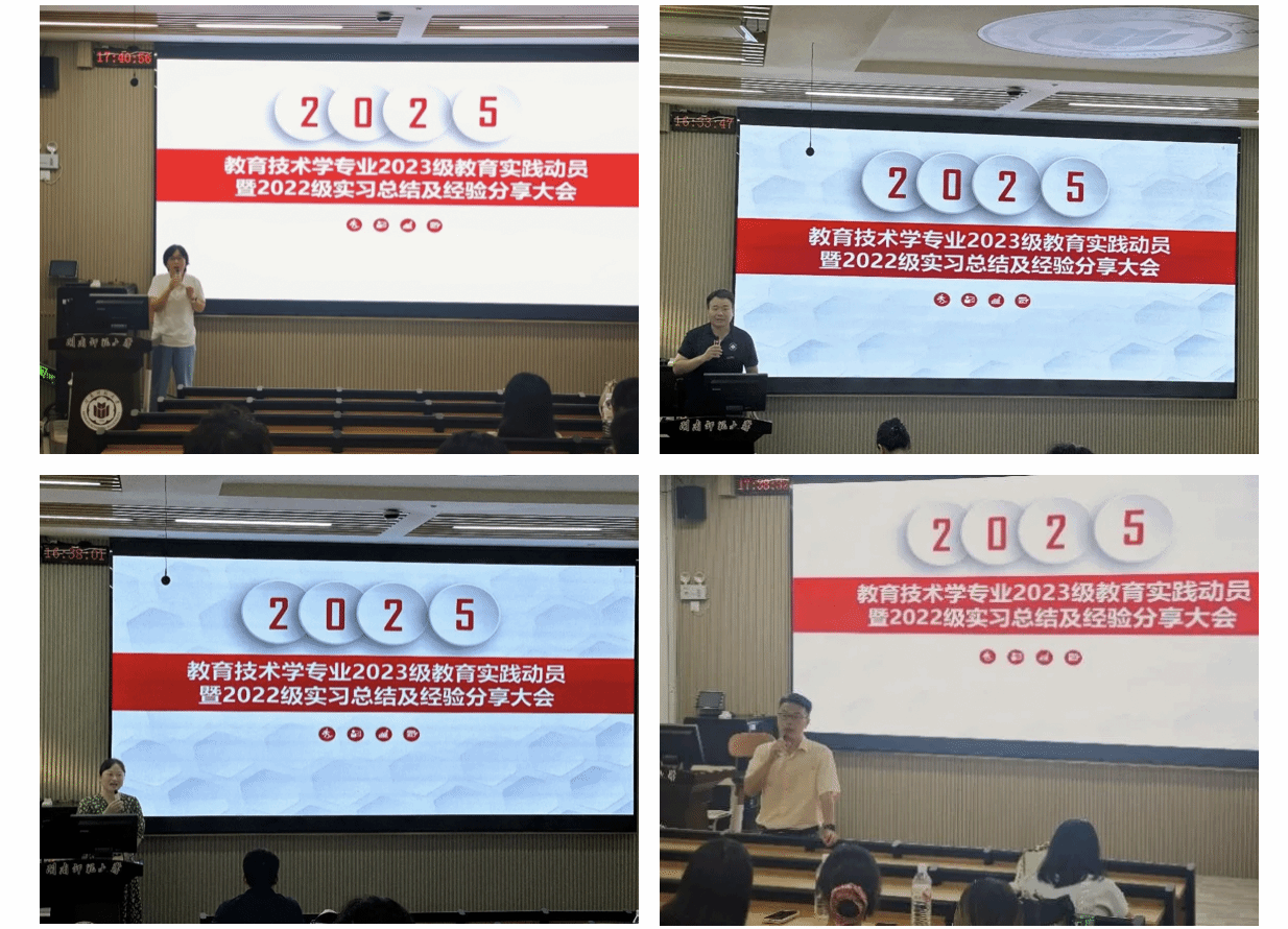为传承 “知行合一” 的育人传统,巩固实践育人这一关键纽带,切实推动理论学习与实践操作深度融合,9月25日下午,我院教育技术系于东门梯教一召开2023级教育实践动员暨2022级实习总结及经验分享大会。院党委副书记杨君玉、副院长刘磊、教育技术系主任袁东斌、辅导员陈雅玲、各实习队带队教师及2022级、2023级全体学生参加本次会议。会议由教育技术系副主任贺宏伟主持。