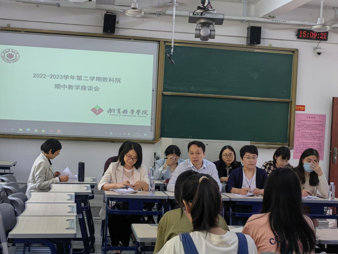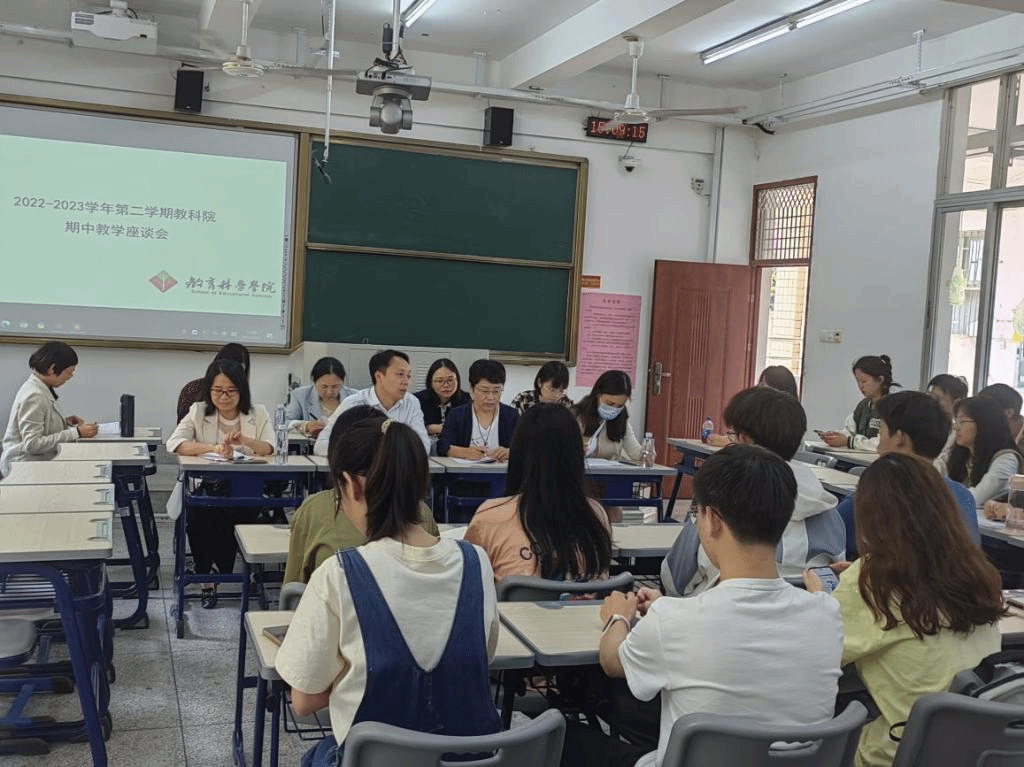 4月27日下午,教育科学学院期中教学座谈会在逸夫楼304教室顺利召开。出席座谈会的有校教学督导、院教学督导、院分管教学领导、各系主任、教学秘书及小学教育、学前教育、教育技术、心理学、少数民族预科各专业班委近二十人。本次座谈会特别邀请了来自文学院的校教学督导肖模艳教授,会议由副院长黄亮副教授主持。