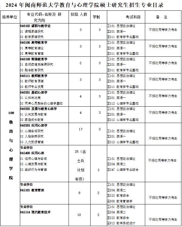 2.专业型研究生:应用心理硕士学制3年;教育硕士学制2年。