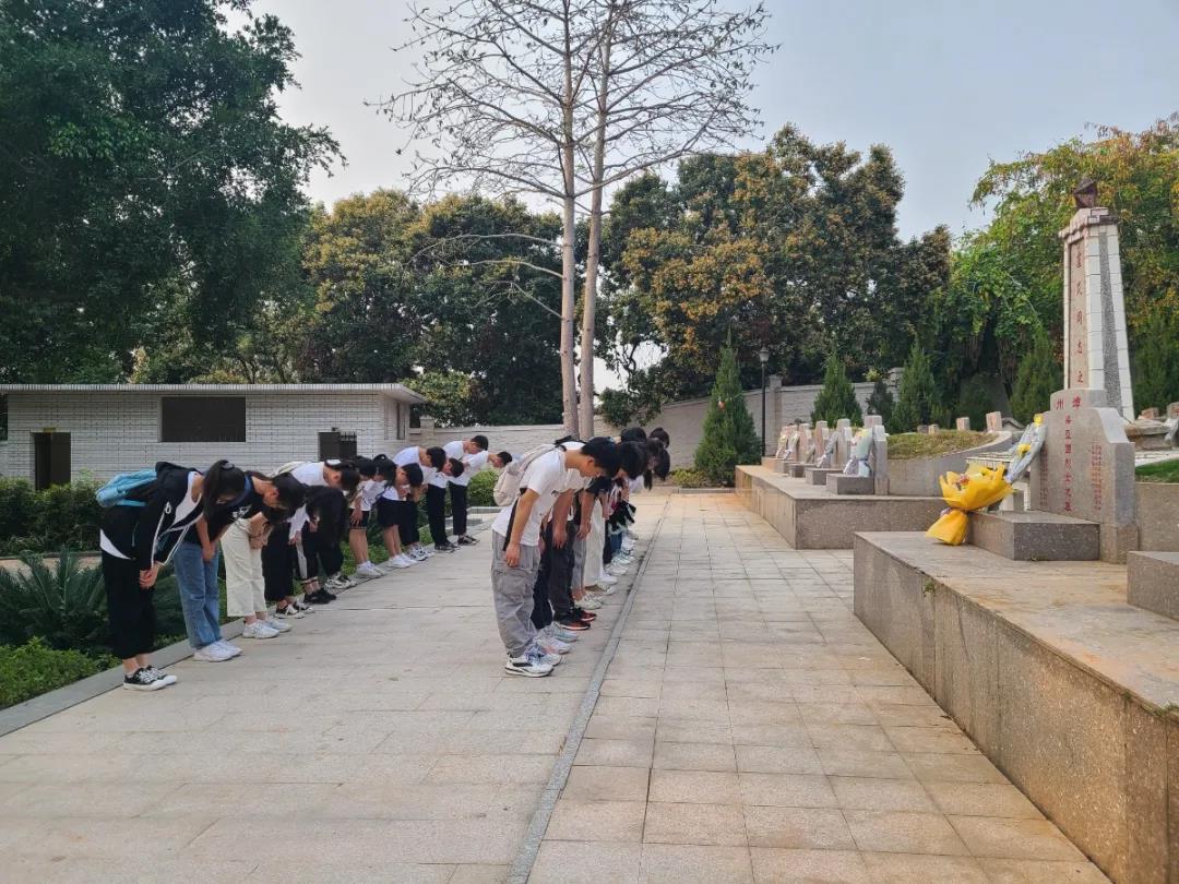 青山有幸埋忠骨,松柏无声祭英灵。大家穿戴整洁,手持菊花,在巍然耸立的革命烈士纪念碑前,面容严肃,默哀怀念,向烈士纪念碑鞠躬致敬,敬献鲜花,表达对烈士的崇高敬意和深切悼念。