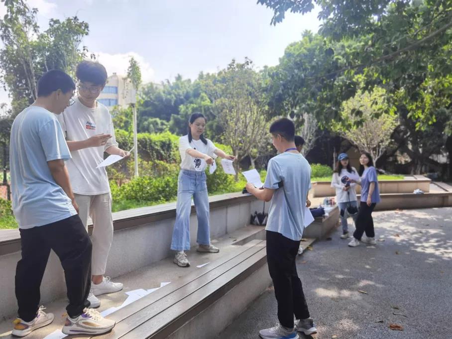 本次党史知识竞赛寓教于乐,融入了生动多样的游戏环节,同学们热情积极参与其中。由各年级组成的十余个参赛队伍在中区篮球场集合,艳阳高照但也阻挡不了同学们的热情,所有队伍集结完毕后同时出发,比赛拉开了序幕。各参赛队伍通过提供的线索在校园内寻找隐藏的打卡地点,根据提示,通过各类党史知识竞答和团队协作活动,完成任务。比赛中,不仅是体力的比拼,更是智慧的较量,同学们充满激情,争先恐后。通过此次活动,同学们不仅增强了彼此的凝聚力,在一同畅玩“你说我猜”“弹射小推车”等小游戏的同时还可以学习党史,重温革命先烈的英雄事迹,回首党的光辉历程。