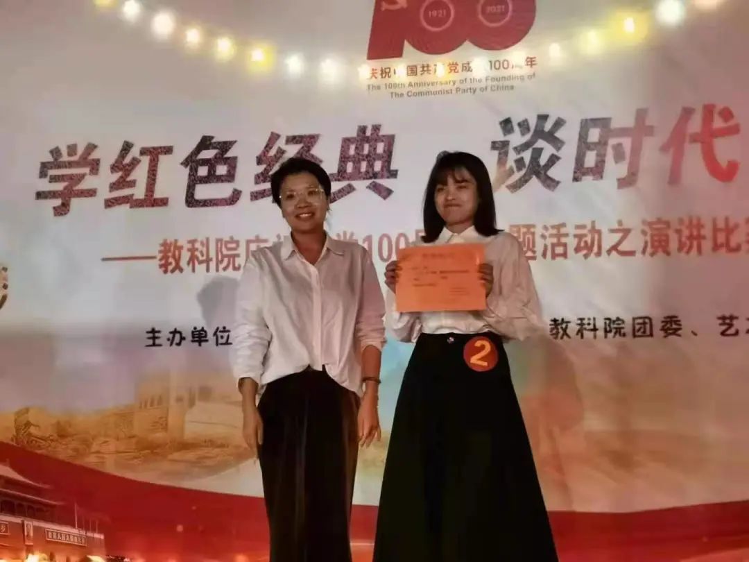 本次比赛共有11名选手参加,他们精彩的演绎、充沛的情感带领大家走入了那段风华正茂的峥嵘岁月,激发教科学子的红色情怀,现场不时响起热烈掌声。经过激烈的比拼角逐,20小教1班池倩榕获得一等奖,20心理1班邹梦环和20小教1班林丹泓获得了二等奖,20心理2班熊雨欣和19小教2班黄涵涛获得三等奖。
