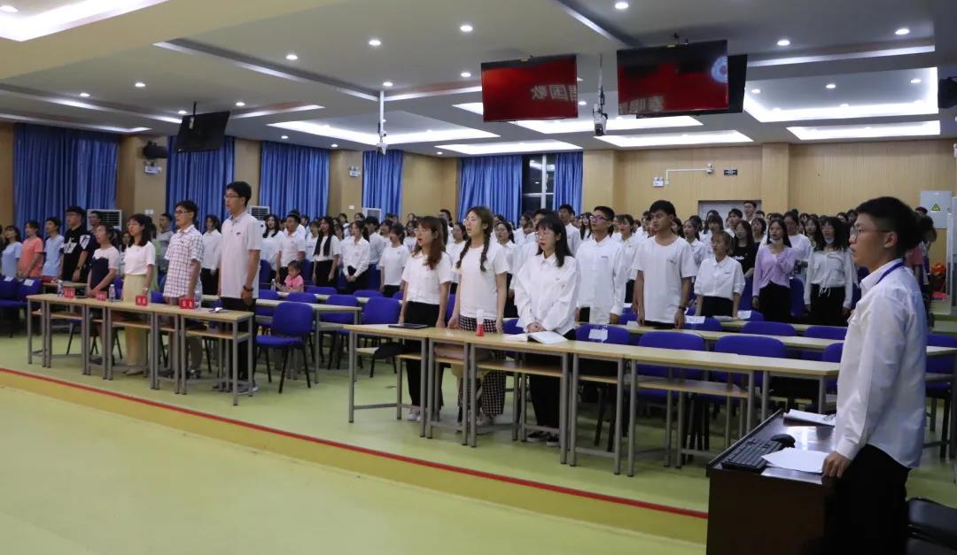 大会上,学院为新团员组织入团仪式,在院团委书记夏丽君老师的带领下,九位新团员们佩戴团徽,面向鲜红的团旗,整齐而洪亮地宣读入团誓词。朗朗宣誓声,莘莘赤子心,印证的是教科后浪们牢记嘱托跟党走,感恩奋进新征程的信心和决心。