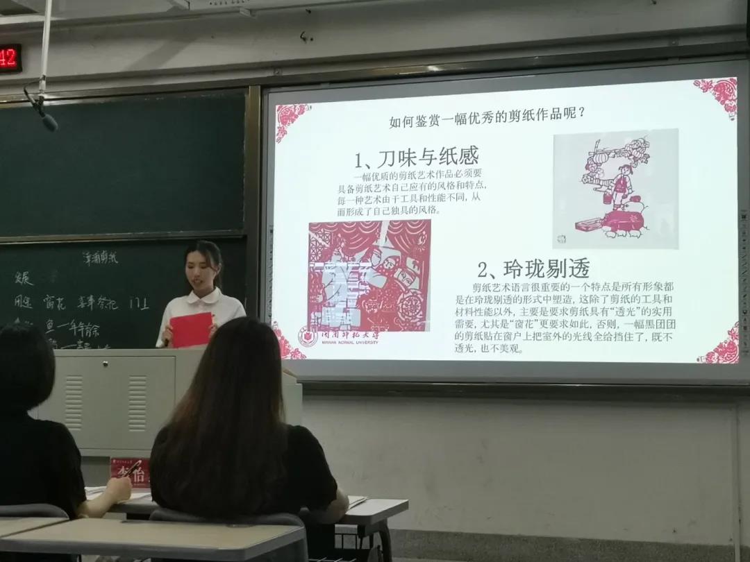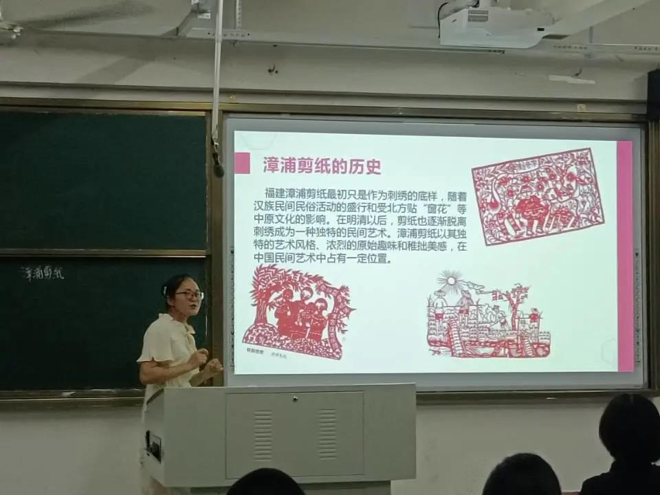 漳浦剪纸主要用剪、撕、刻的手法制作,最早流行于漳浦县的村镇,现如今,这样一门古老的民间艺术,面临从业人员不多、经典剪纸作品急需保护的问题。参赛选手借此契机,选择了漳浦剪纸,希望可以通过片段教学的方式引起同学们对漳浦剪纸的关注,以探索互动的方式促进学生对漳浦剪纸的了解,以课件展示、动手制作的方式激发同学们的学习、保护传统文化艺术的兴趣。