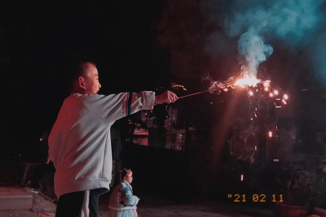 不同的人用不同的方式辞旧迎新。本组照片记录了孩童、青年、老人们不同的过年方式。孩子们用笑容、烟火点亮黑夜,用笑声、爆竹迎来新年;青年们三两成群或聚宴或散席,团坐在街边用热气腾腾的小吃暖肠胃。老人们排坐台阶上谈着家常,用丝竹合奏一台手指木偶戏。幕布围搭起的小戏台,白衣武将偶在操纵者的手里灵活舞动,上演一场《万花楼》。街边的枯枝被灯笼装饰也显得少了几分颓败,增添了一丝生气,与停靠街边的汽车在逆光的剪影中烘托了安静祥和的新年氛围。