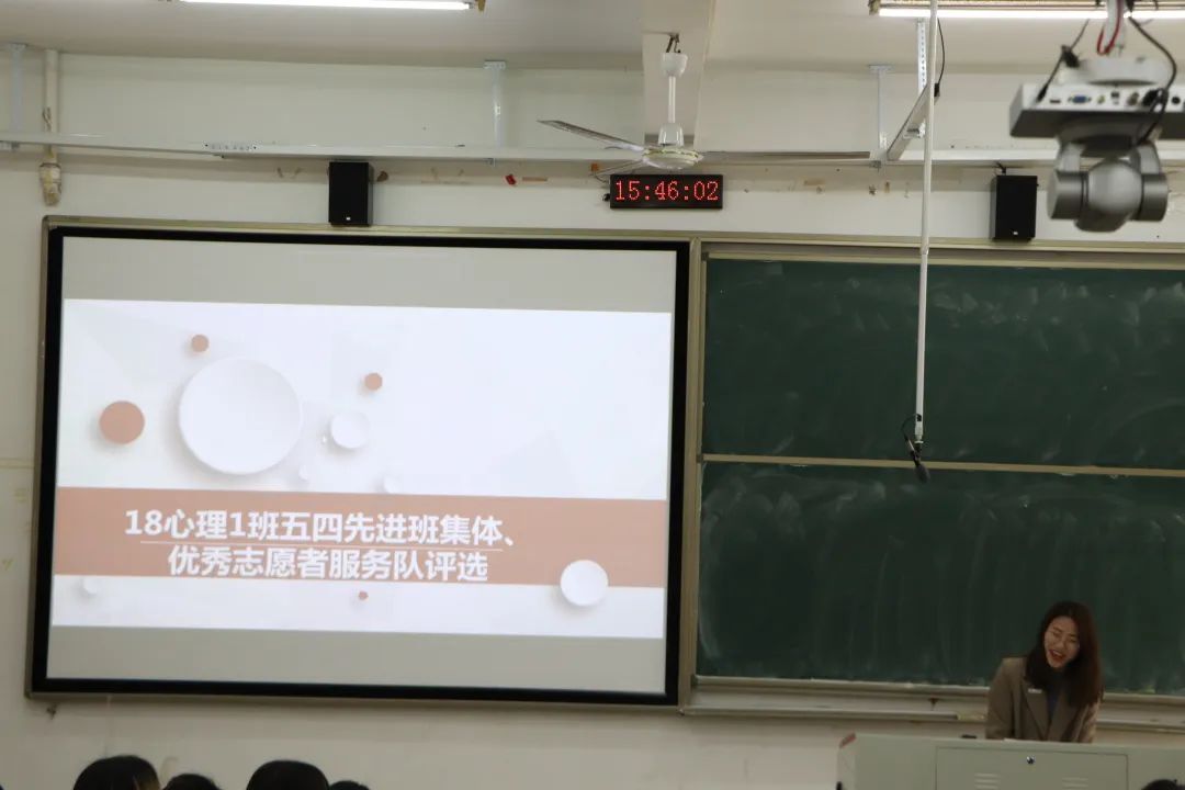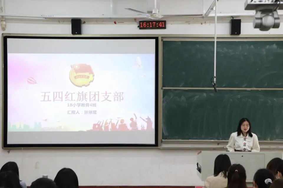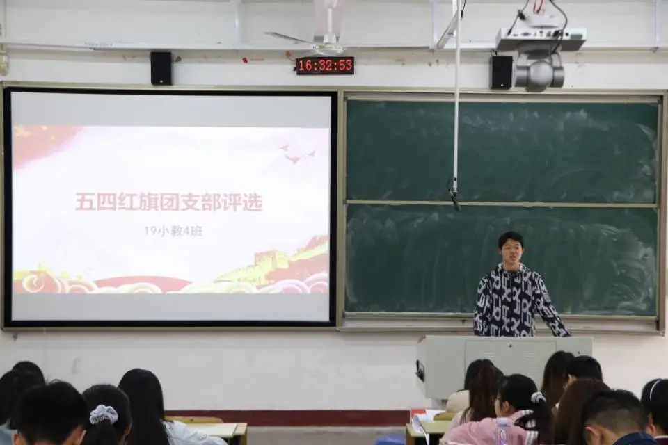 “五四”运动所承载的“爱国、进步、民主、科学”精神历久弥新,薪火相传,激励一代代有志青年,为国为民不懈奋斗。今年的“五四”恰逢建党100周年,为了更好发挥基层团组织和青年团员的先锋模范作用,引导青年团员们传承五四薪火,立大志,明大德,担大任,成大才,为伟大复兴中国梦接续奋斗,教育科学学院团委于4月15日在梯教一举办了“五四”评优大会,学院2018、2019、2020级各参评团支部代表参加会议并投票,各年级辅导员担任评委出席会议。