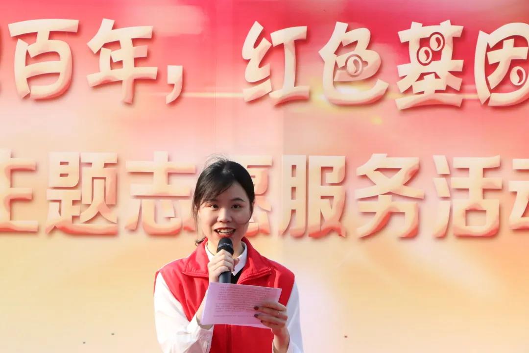 志愿服务对象代表,芗城实验小学周芳瑶同学发言,孩子们都是光荣的少先队员,更是党的孩子,希望通过参加这次志愿活动,学党史、感党恩、听党话、跟党走,童心向党,争做新时代好少年,行之有恒,让胸前红领巾更加靓丽。