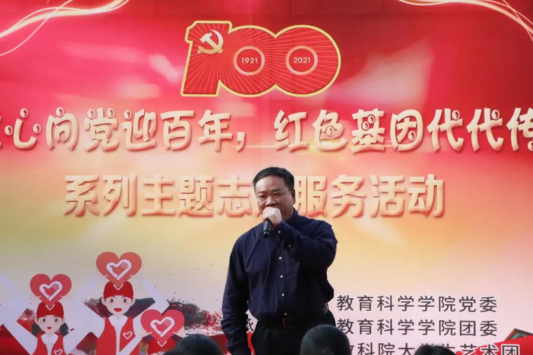 随后,陈顺森院长作动员讲话:学院党委精准融合党史学习教育、师德师风养成、志愿服务,采用孩子们喜闻乐见方式,宣讲党一百年筚路蓝缕,开创辉煌的伟大征程,学党史,传薪火,帮助他们“扣好人生第一粒扣子”,饮水思源,做红色传人!同时希望志愿者们在保障活动质量,做精志愿品牌的同时,教学相长,接受深刻的党史教育,在实践中重温筑梦育人的初心使命。