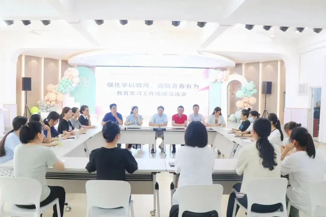 为强化主题教育调查研究工作,了解我院实习生的实习工作情况,加强学院与教育实习基地的交流与合作,合力打造优质实践育人平台,6月8日黄副院长和学前教育系刘黎薇老师、辅导员张龙老师一行赴泉州市洛江区双阳中心幼儿园开展实习调研,并与洛江区教育局副局长黄铁水、区教育局人事股股长林文莅、幼儿园园长赖艺艺等开展座谈。