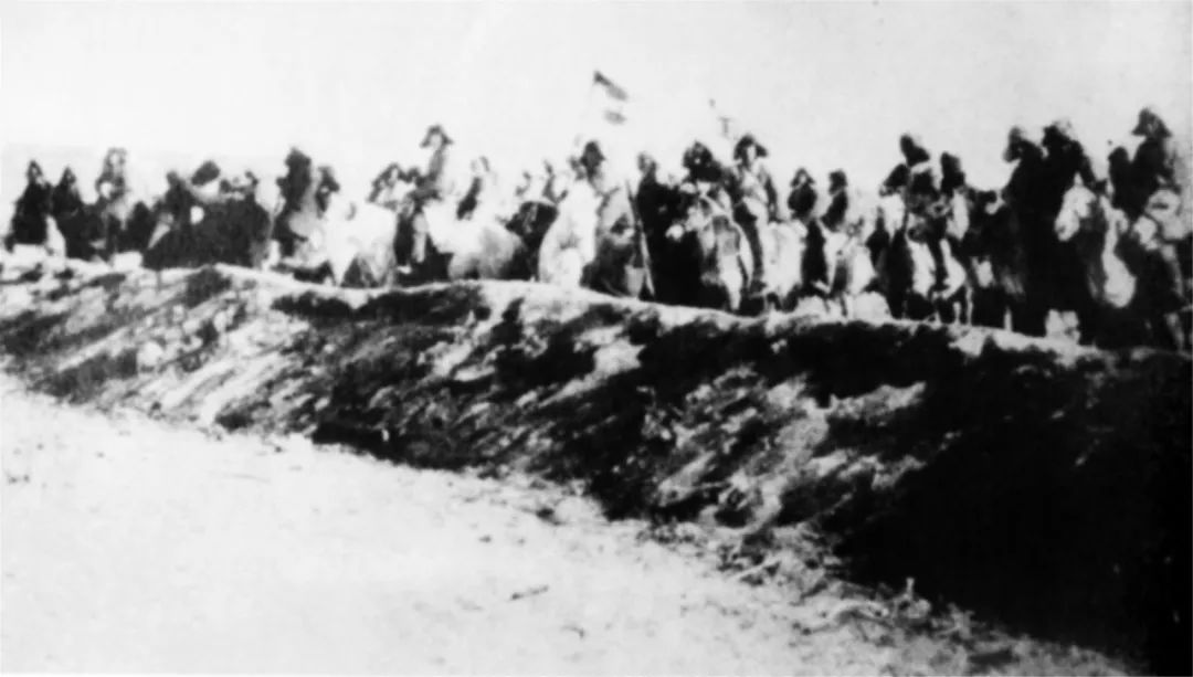 东北抗日义勇军开赴抗日前线。中国人民抗日战争纪念馆供图