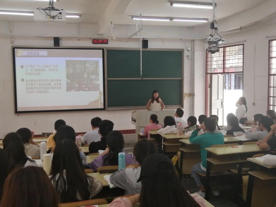 各小组依次上台作实践报告心得交流,分享在党校培训中的成长与收获:第一组学员分享“感悟党课,我们在路上”心得,学员们在劳动卫生教育的过程中明白了作为一名入党积极分子应有的责任和担当,愿意为社会贡献自己的一份青春力量;第二组学员通过整理校园内乱停放自行车、电动车的志愿实践活动,进一步增强了为人民服务的信念和甘于奉献的精神;第三组成员奉献自我,积极追梦,自发组织整理食堂餐桌隔板,争当讲奉献、有作为的好青年。