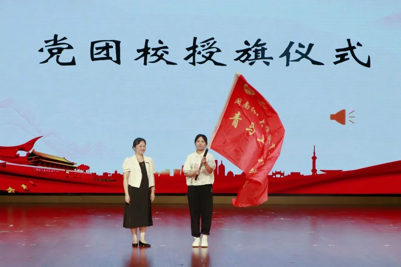 杨君玉老师为团校学员授旗。