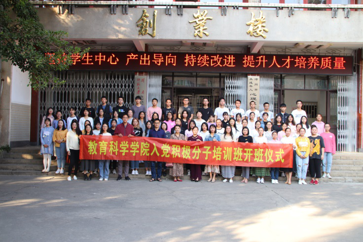2019年11月9日,教育科学学院党委在梯教二举行了分党校第十六期入党积极分子培训班开班仪式。我院党委副书记杨君玉老师、团委书记夏丽君老师、研究生辅导员鲍超老师、16级辅导员张龙老师、18级辅导员陈钰煌老师、19级辅导员陈雅玲老师出席了开班仪式,67名入党积极分子参加了开班仪式。